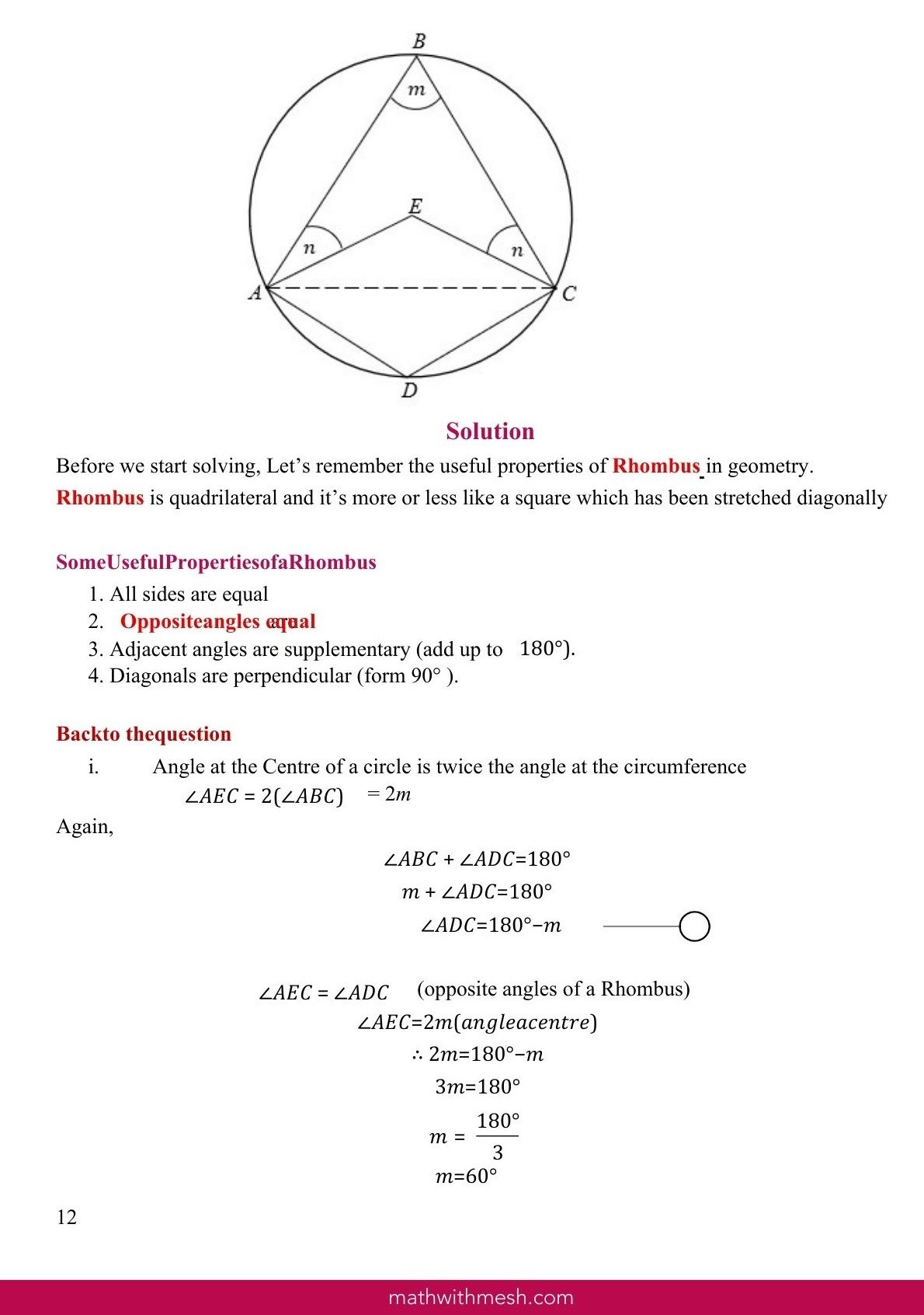 • Rhombus properties connected to circle problems
